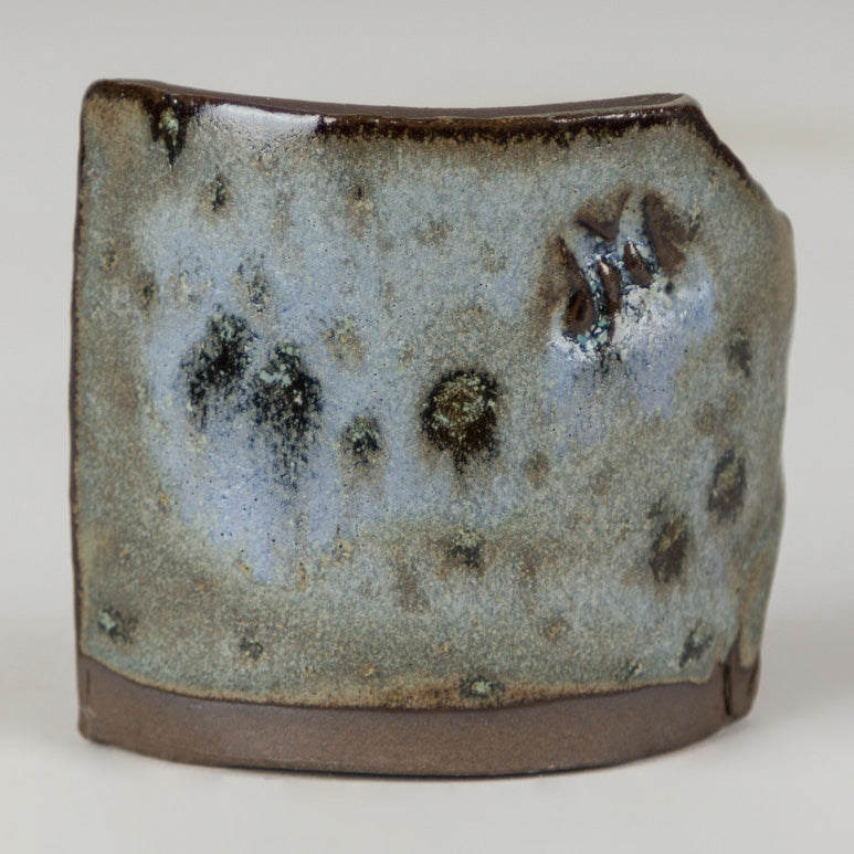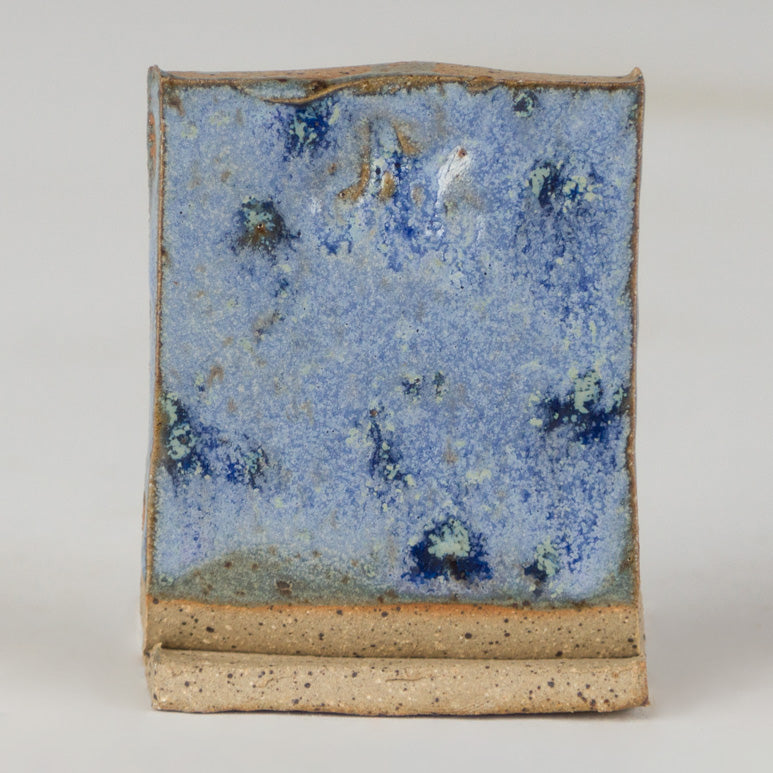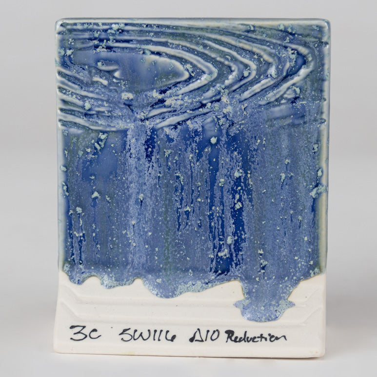 Cone 10 reduction: Semi-gloss finish with variegated blue/light blue and crystals.