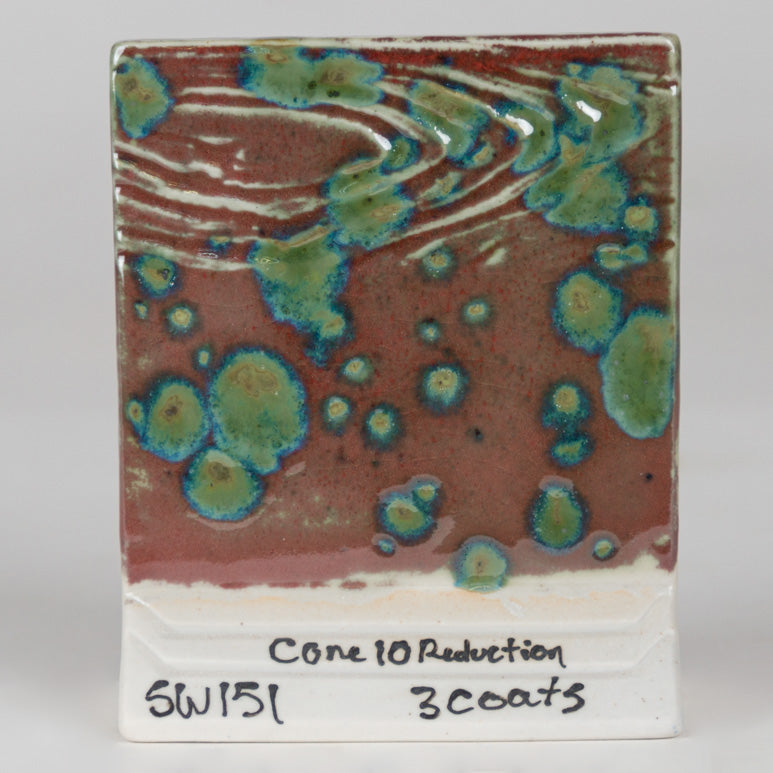Cone 10 reduction: Color changes to red. Crystals remain.