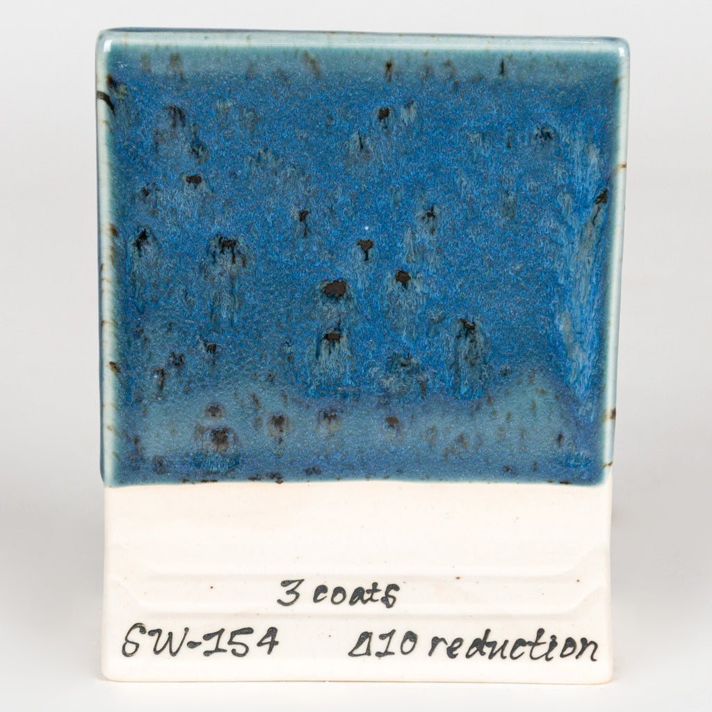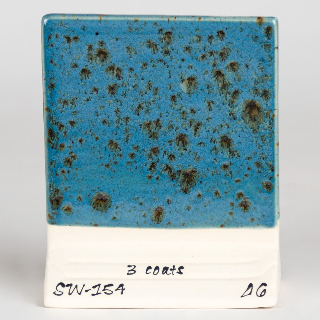 Cone 6: Shipwreck is an aquamarine gloss glaze that contains an iron crystal. As the crystal melts, a small iron speck appears. The glaze appears mysterious like underwater footage.