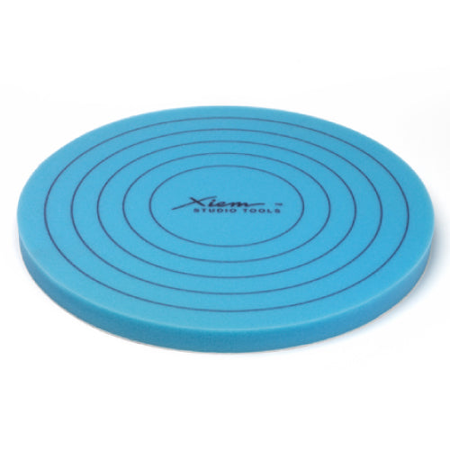 Xiem Studio Tools innovative peel-and-stick self-adhesive foam trimming bat is ideal for trimming large bowls and plates without the use of a coil to attach the piece to the wheel head. The foam bat sticks firmly to all types of 14 wood and plastic bats.