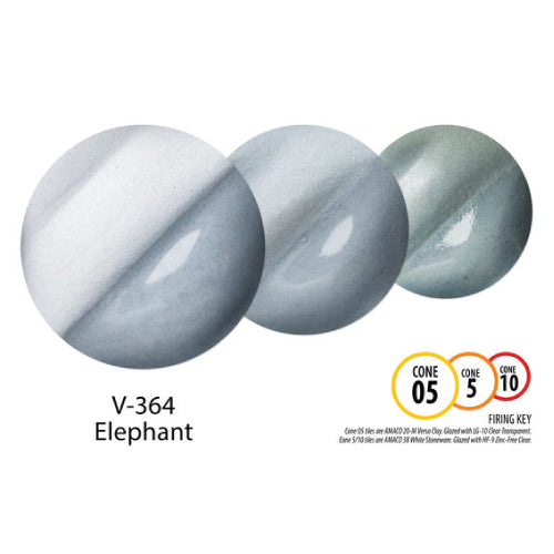 Elephant Velvet Underglaze is a light, ashy shade when fired to cone 05, darkens to a deeper gray at cone 5 then turns to a grayish-black akin to elephant skin when fired to cone 10. A clear glaze accentuates the color of the underglaze significantly at any temperature.