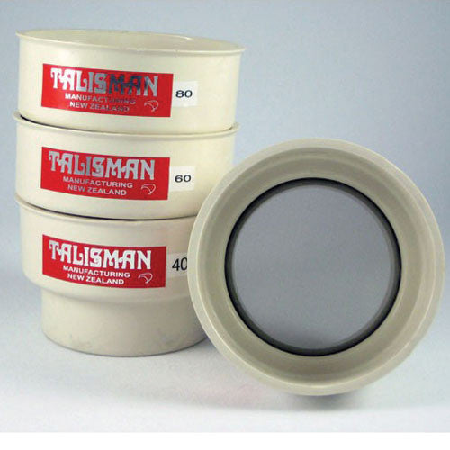 Ideal for sieving stains and test batches of glaze. 4.3" wide at top and 2.75" high. Available individually in mesh sizes 40, 60, 80, 100, and 150.