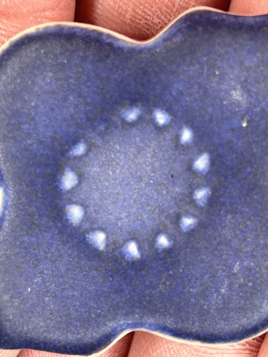 Spectrum’s 1143 Textured Navy a cone 4/6 stoneware glaze. It produces a dark blue surface that is brighter on white clays than on darker ones. All of Spectrum’s 1100 Stoneware Glazes are available in wet formats and are suitable for brush application.