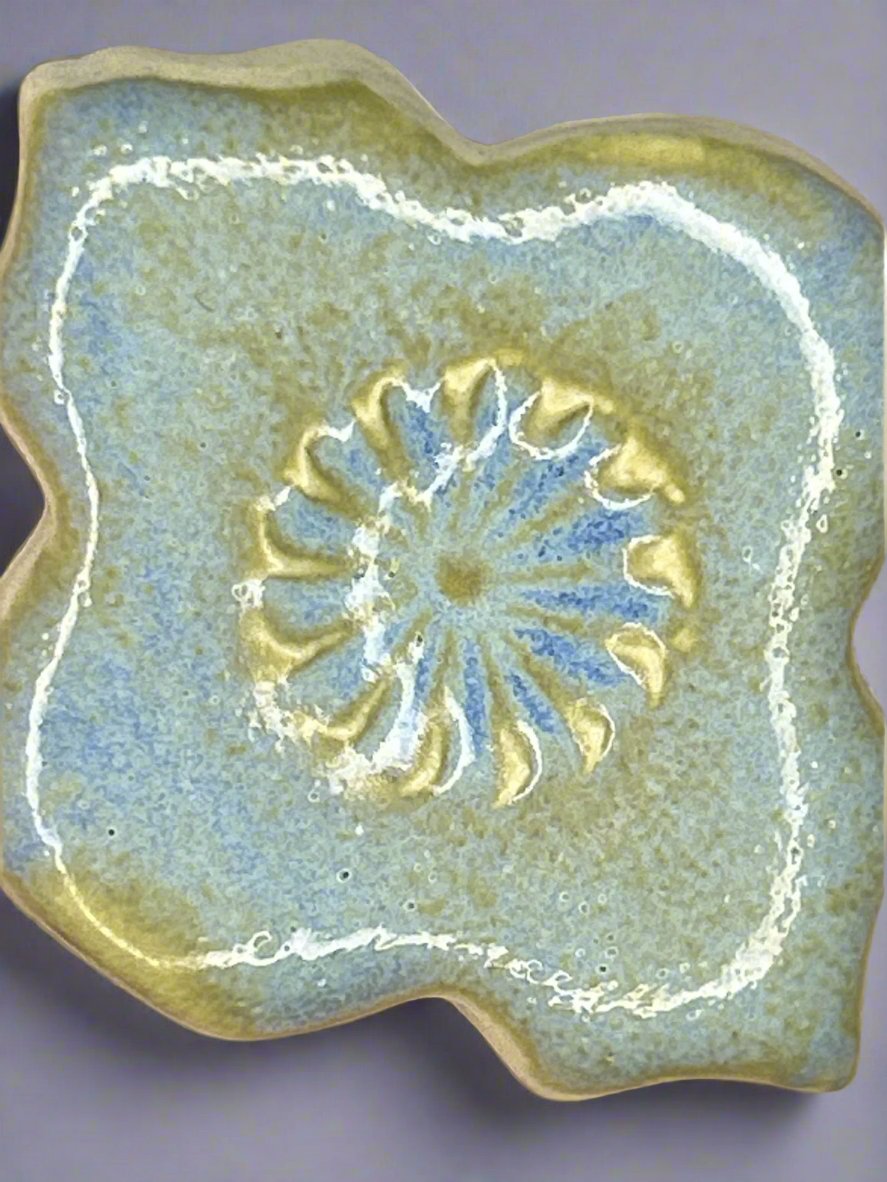 Spectrum’s 1180 Lagoon is a cone 4/6 stoneware glaze. It produces a beautifully interesting finish of blues, greens and yellows. All of Spectrum’s 1100 Stoneware Glazes are available in wet formats and are suitable for brush application.