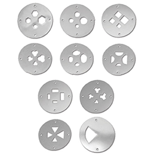 The 4 IN 1 Extruder die set comes with 9 dies and 1 block out die. Use the block out die to cover three of the four size options on each 4 IN 1 die. Simply place the desired 4 in 1 die with the block out die over it. Insert the two dies into our hand-held extruder and begin extruding.