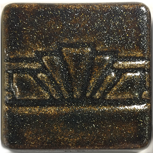 Cosmic Tea Dust is a sparkly, dark brown glaze, which breaks a light yellow-brown over texture. The sparkle shifts subtly from silver to copper to give the glaze an iridescent quality.