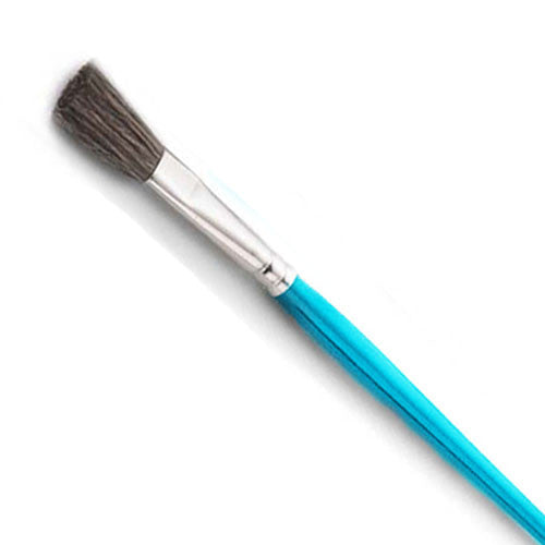 This is a very good all-purpose glaze or underglaze brush. It holds a lot of glaze and allows for precise lines with its straight, stiff bristles.