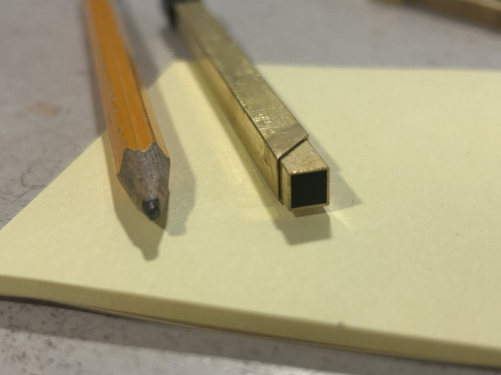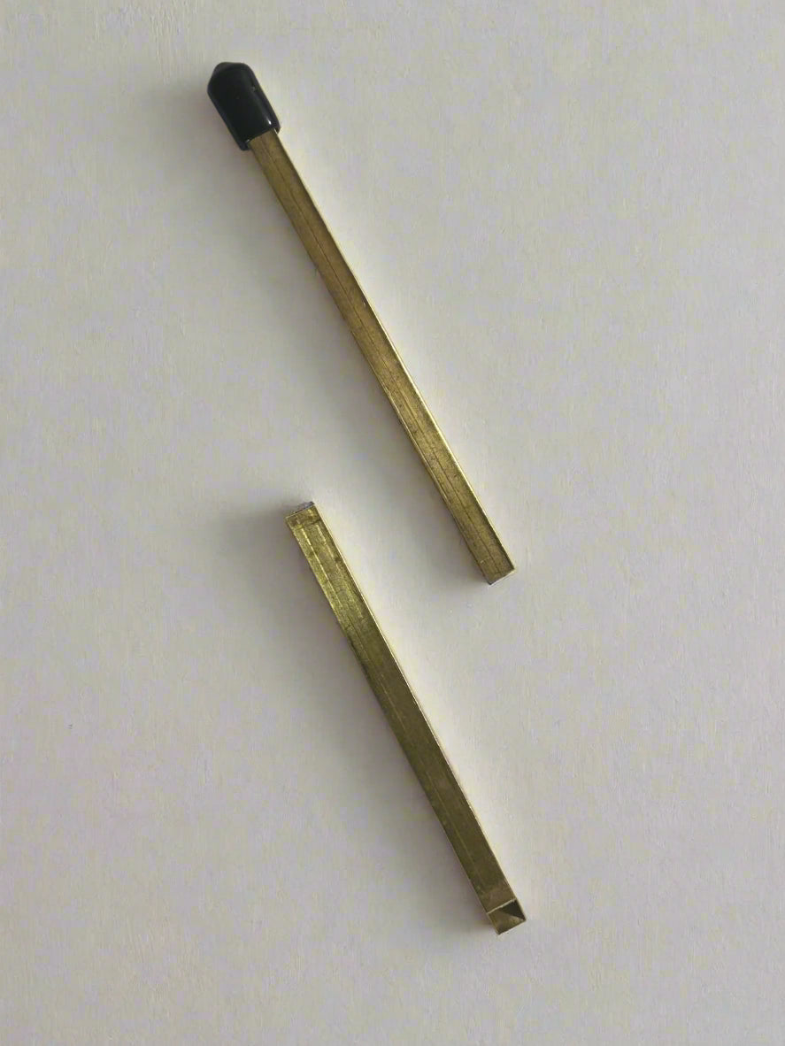 A square, all-brass tube with a push-plunger to clear clay from the tube as you work. Used to cut holes in greenware. This tool creates a 1/4" square hole.