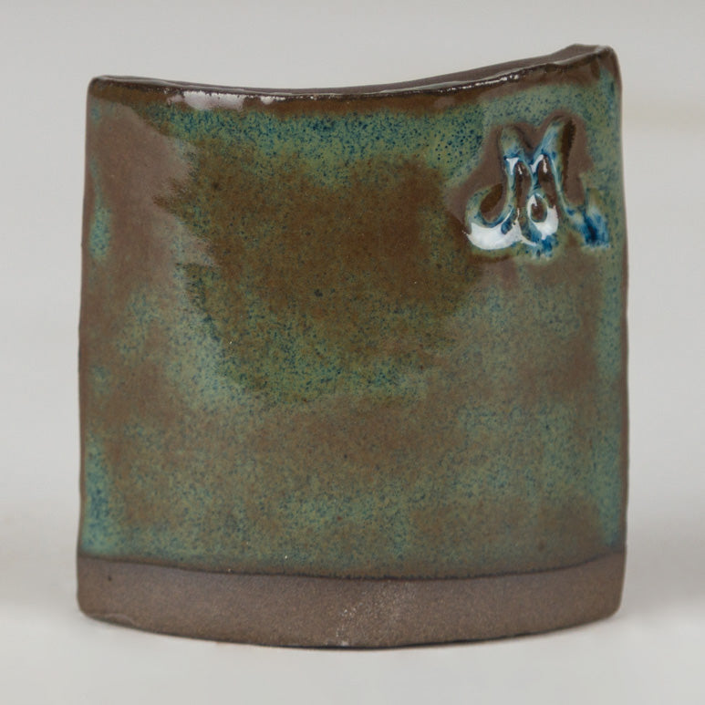 Cone 6 oxidation Stoned Denim is a variegated blue glaze that breaks brown.
