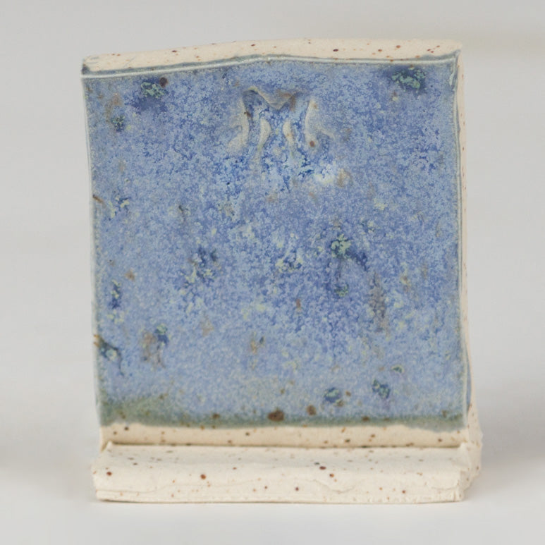Cone 10 reduction: Semi-gloss finish with variegated blue/light blue and crystals.