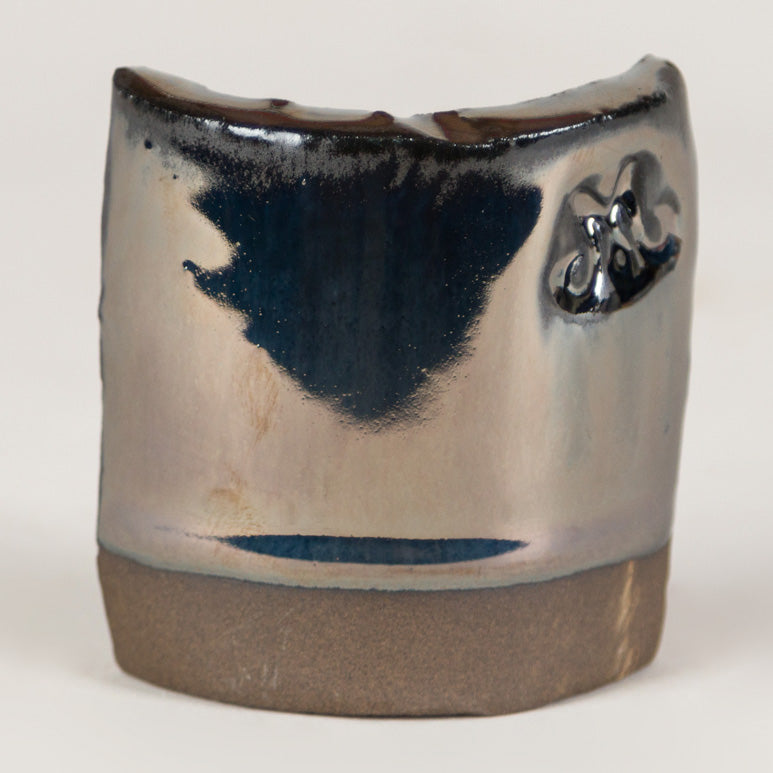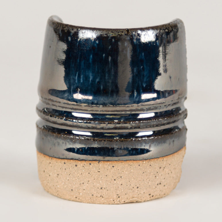 Cone 6 oxidation: Mirror Black creates a highly reflective, metallic black gloss finish. On some vertical surfaces and around surface textures, minor matte effects can be seen; all other applications result in the formation of a black, metallic mirror.