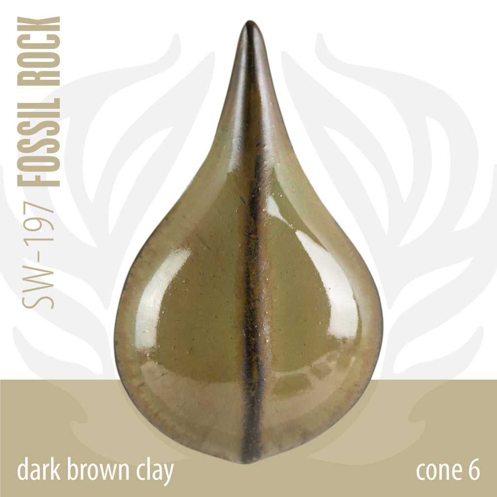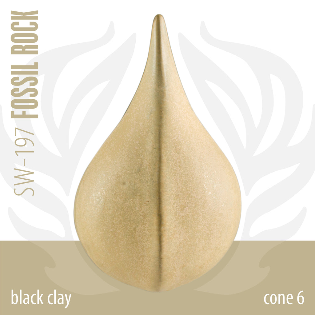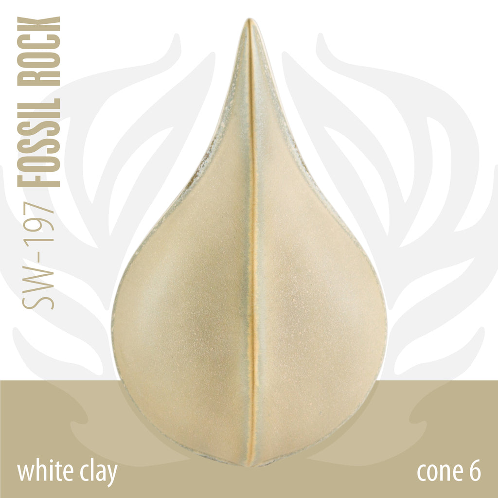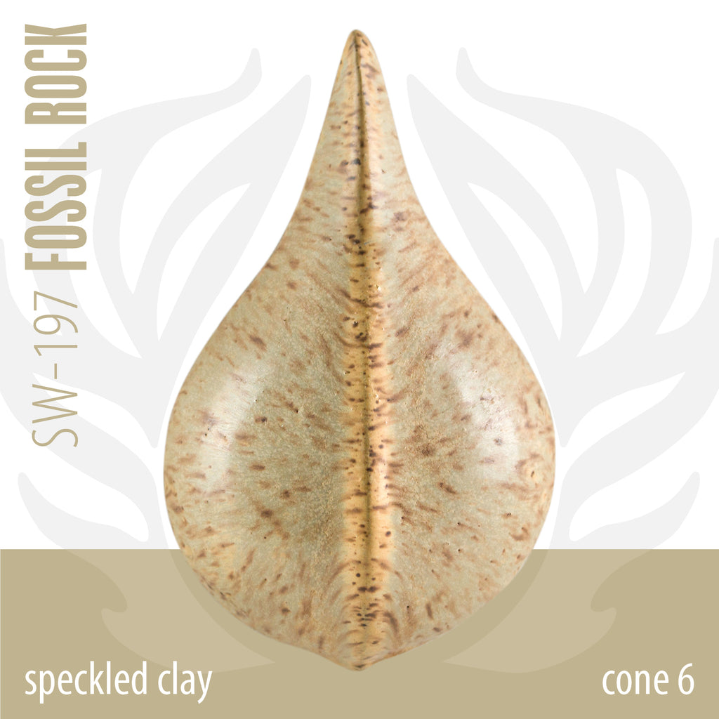 Cone 6 oxidation: Geologically inspired with mottled earth tones, Fossil Rock is an opaque, tan, matte glaze that breaks over texture.