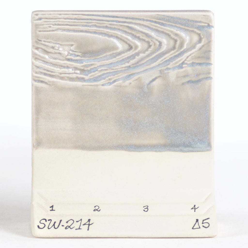 TIP: This glaze is stable at 3 coats. Additional coats or increased application thickness may result in movement. We recommend firing our micro glazes to cone 6 oxidation to reach crystalline development. Micro-Pearl achieves a stable, semi-opaque, frosted white result with a pearlescent satin finish when fired to cone 5. Can be used in oxidation or reduction firings. Results may vary. The choice of clay body, thickness of application, firing process, and temperature will greatly affect the fired results. Always test your application on your clay body in your kiln environment.