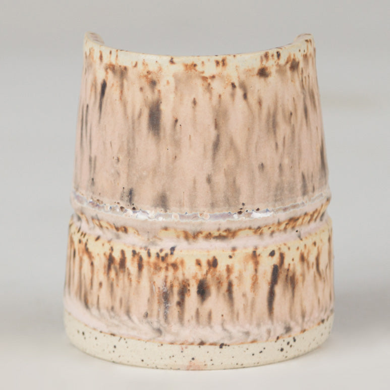 Cone 6: Himalayan Salt is a soft matte glaze with light pink and burnt orange mottling that will pool a glossy clear.
