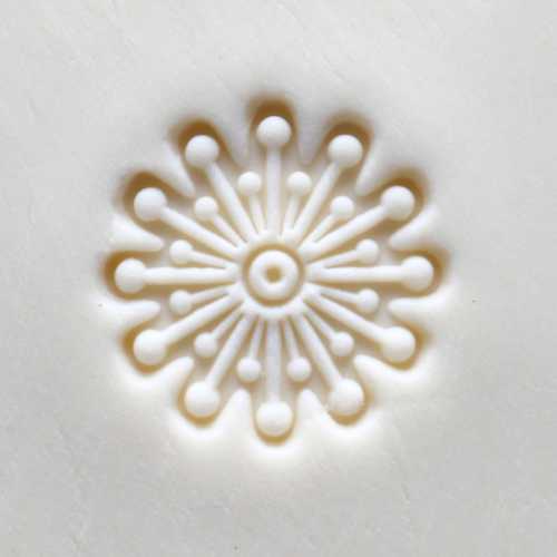 SCM Stamps are 2.5 cm (1 inch) in diameter. SCM stamps can be used to create beautiful patterns on any soft medium, including natural clays, porcelain, polymer clays, and even cookie dough.