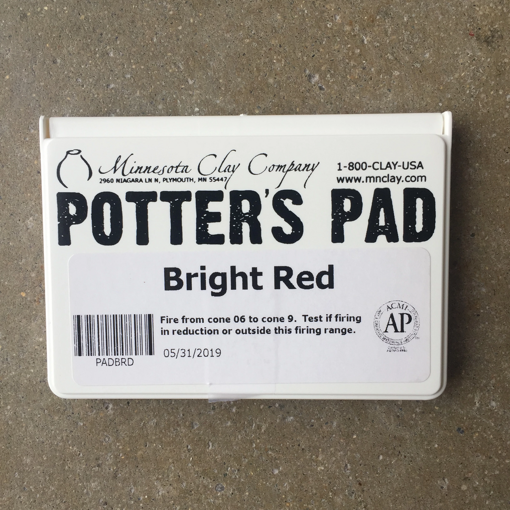 Finally! An easy way to use traditional rubber stamps with underglazes!! These great underglaze stamp pads by Minnesota Clay function just like ink pads, but are made from underglazes rather than ink. Simply use your favorite rubber or wooden stamp and gently press the stamp into the potter's pad. Then transfer the inked stamp image onto your green or bisqued pot and voila! Glaze over the image with a clear or other transparent glaze and fire to glaze requirements.