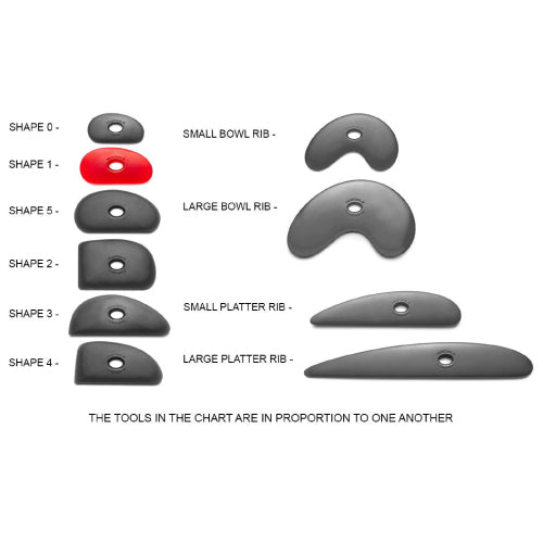 All of the Mudtools polymer pottery ribs are made of a unique flexible material that will not develop burrs or cracks under normal use. Over time the rib becomes even more polished. Each polymer shape is available in a variety of hardness: