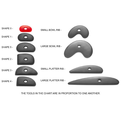 All of the Mudtools polymer pottery ribs are made of a unique flexible material that will not develop burrs or cracks under normal use. Over time the rib becomes even more polished. Each polymer shape is available in a variety of hardness: