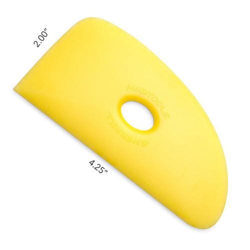 Shape 4 Polymer Ribs are Mudtools' medium sized Polymer Ribs that come to a sharp point on one end, providing two flat-edged sides. These sharp edged ribs are useful for sculpting, handbuilding, and throwing. Yellow Mudribs are the soft color of the polymer Mudrib collection.