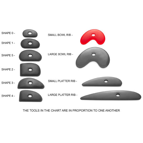 Small Bowl Ribs are designed to give as many radius sweeps on the clay as possible. They are smaller in the front and bigger in the back and are a workhorse of a rib, especially if you are throwing big pots.