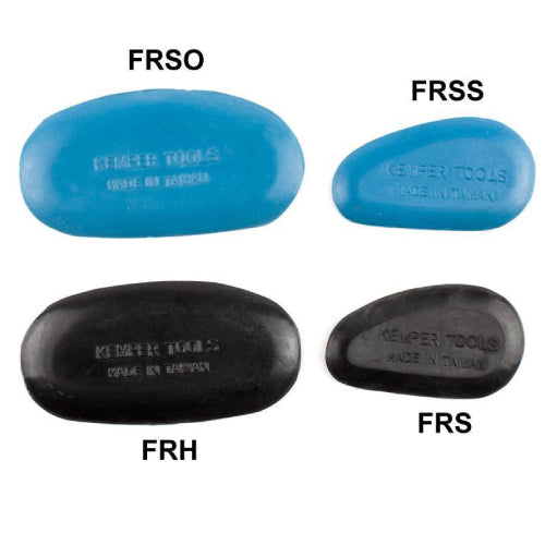 Kemper kidney ribs are molded from pliable rubber and used for smoothing, shaping and finishing pottery pieces. Large and small kidney shapes are available in two different grades of resiliency.