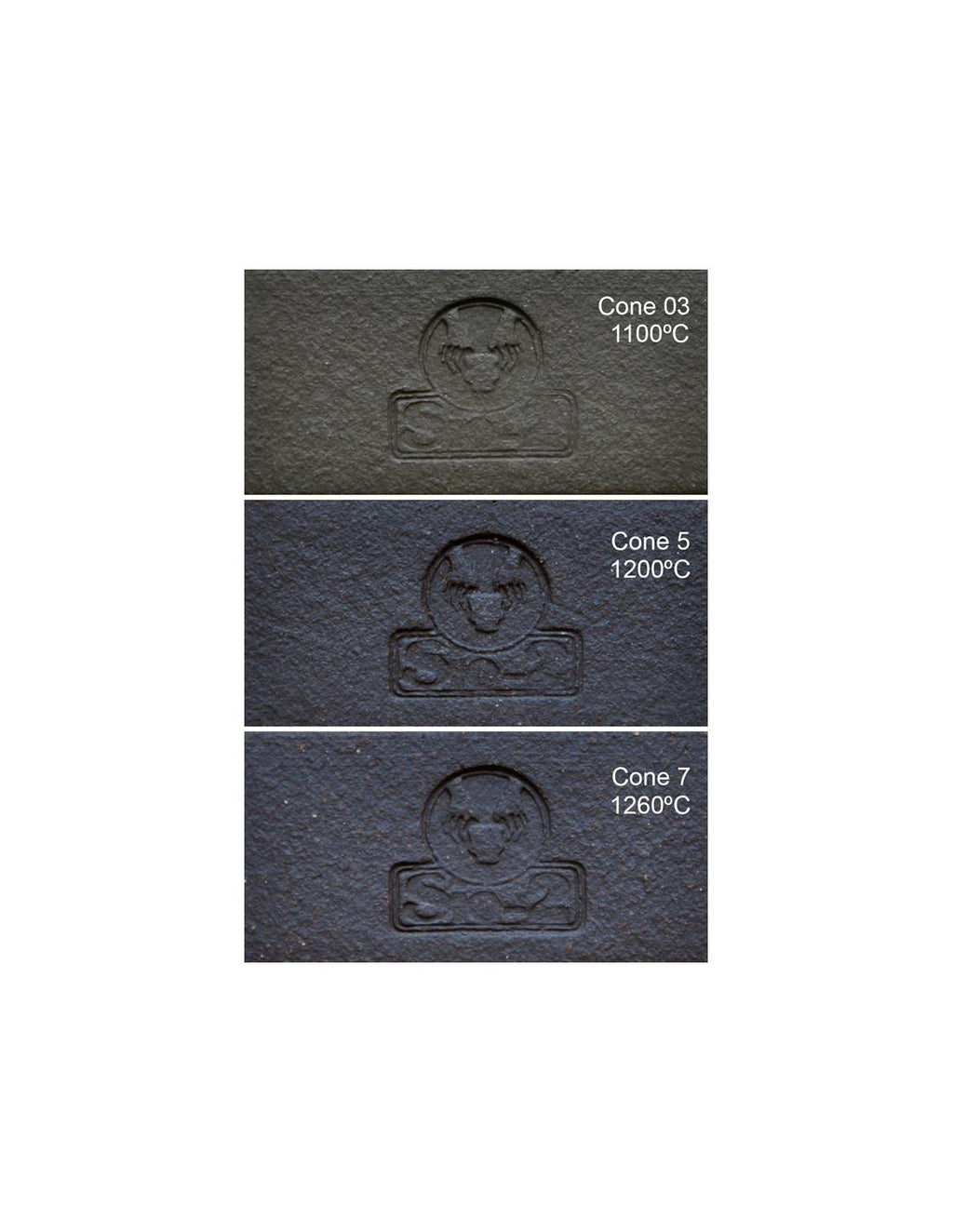 Black sculpture clay with 40% fine grog 0-0.5 mm (up to 35 Mesh). Formulated for artistic ceramics, it is ideal for sculpture. The high content of grog confers a beautiful textured surface and an excellent behaviour during drying and firing. Its beautiful and intense black firing colour in oxidising atmosphere is very exclusive of PRN range and becomes an ideal artistic mean of expression. In reducing atmosphere, metallic effects with shades of blue are obtained. Available in extruded body (moist form).