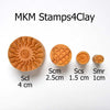 SCL Stamps are 4 cm (1.5 inches) in diameter. SCL stamps can be used to create beautiful patterns on any soft medium, including natural clays, porcelain, polymer clays, cookie dough and fondant.
