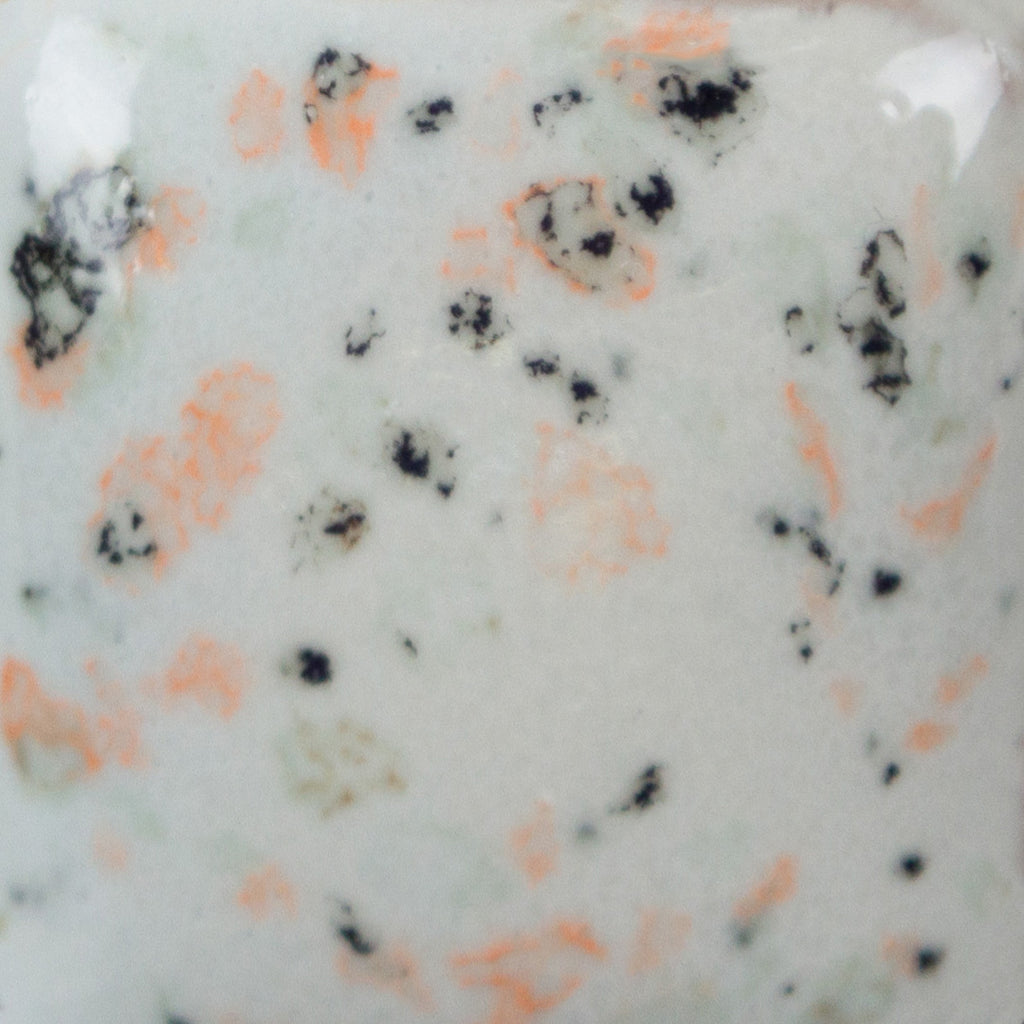 Speckled Vanilla Dip is a heavily pigmented, viscous Stroke & Coat® glaze with orange, brown and black specks that can be used for brush strokes or opaque coverage. One coat will create a translucent finish with subsequent coats adding opacity. We suggest two to three coats for full opacity and all over coverage. Will fire to a gloss finish without clear glaze.