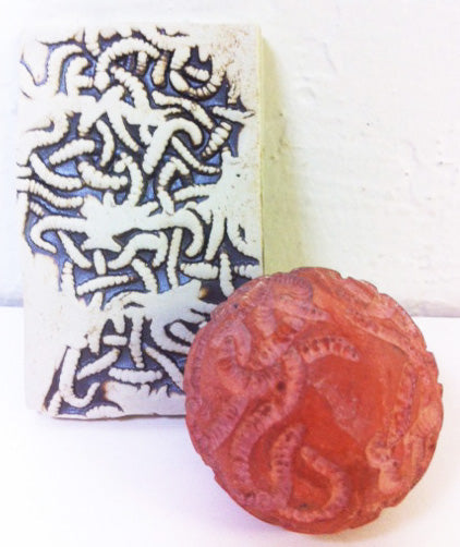 Roll across surface of clay to imprint pattern. Use as a stamp holding at different angles or roll by hand straight or in circles.