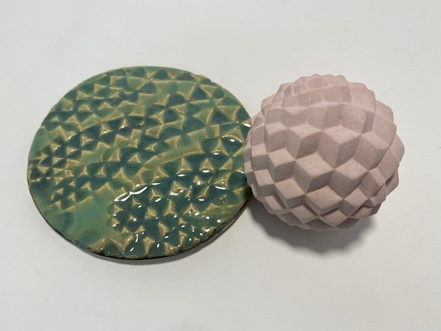 Roll across surface of clay to imprint pattern. Use as a stamp holding at different angles or roll by hand straight or in circles.