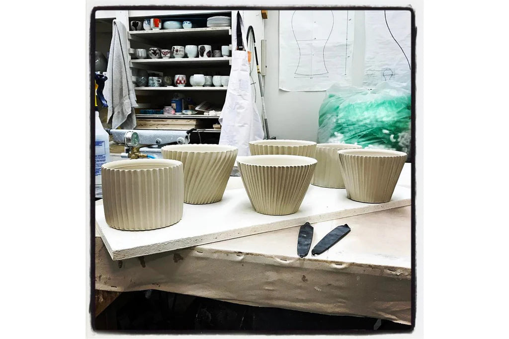 The Dragtool motion allows for less friction when cutting and a fluid finish. Made of high carbon steel and tempered to be very hard, the Dragtool allows potters to make fluted marks in a wet to leatherhard clay surface. Double-ended tips create different size flutes. Whether you draw a long fluted line or chip away at the clay, the texture works well under a celadon or any glaze that breaks on the surface.