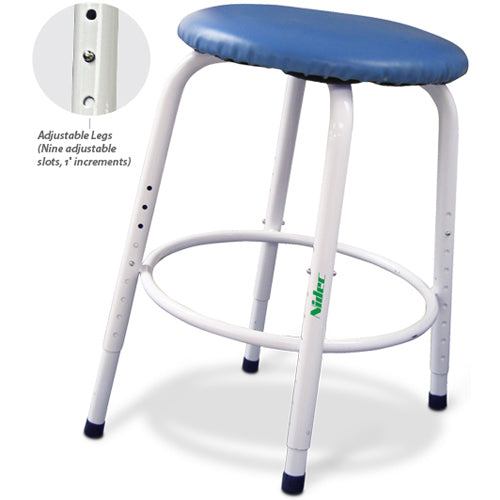 The adjustable leg stool allows an assortment of heights to accommodate everyone, and can be tilted to relieve strain on your lower back. The tilt feature also puts you over your work to help you while centering on the wheel. The stool is finished attractively with a white frame and blue seat. The adjustable leg stool not only serves the potter but will also comfortably fill the needs of the painter and sculptor.